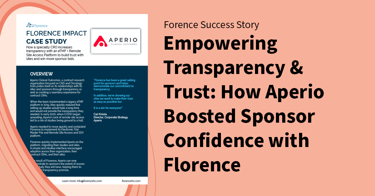 Empowering Transparency & Trust: How Aperio Boosted Sponsor Confidence with Florence https://online.flippingbook.com/view/898243718/ Let's Cure Clinical Trials Together Request Demo