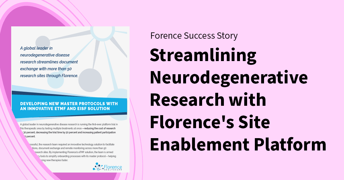Streamlining Neurodegenerative Research with Florence's Innovative eTMF & eISF Solution https://online.flippingbook.com/view/898059219/ Let's Cure Clinical Trials Together Request Demo